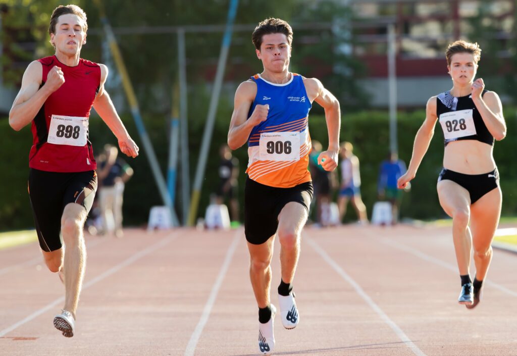 Ole van der Horst en Sacha van Agt naast elkaar in de 100m race